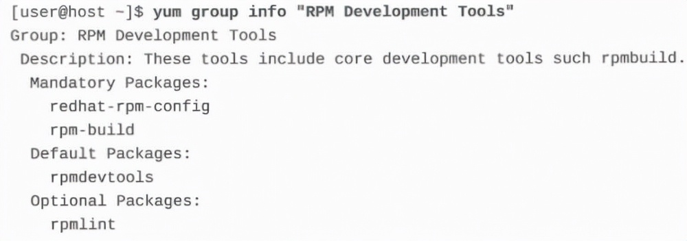 - yum group info显示组的相关信息。它可以列出必选、默认和可选软件包的名称。
